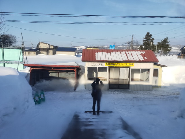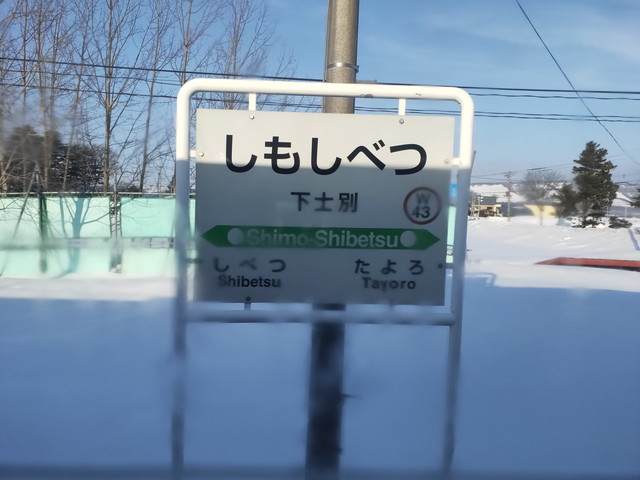 駅名標を見てふと気づいたのですが、となりの下士別駅については12日までで廃止となるのでシールがつけられています。そういえば駅名標がやけに新しいので、既に付け替えを終えていて、この下には13日以後の士別駅が書かれているのでしょうか。
