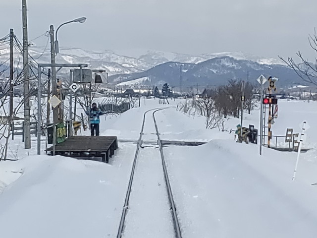 廃止となる南美深駅も直線上にポツンと黒い朝礼台のようなものが見られますが、それがホームです。ここから1名の乗車がありました。