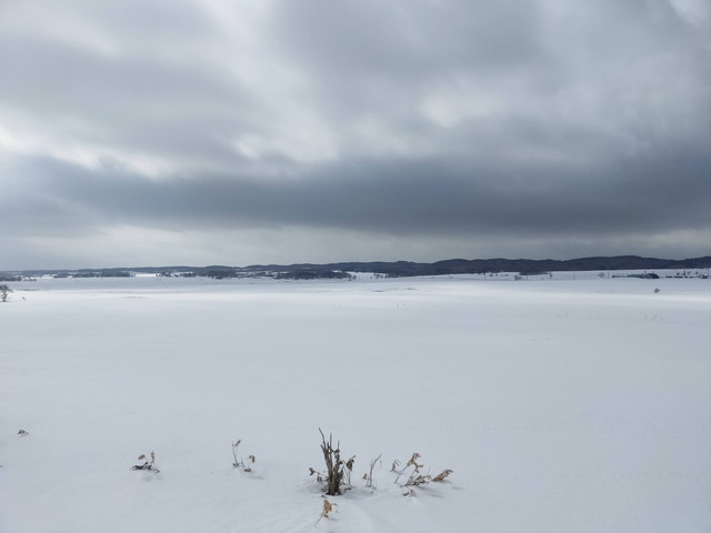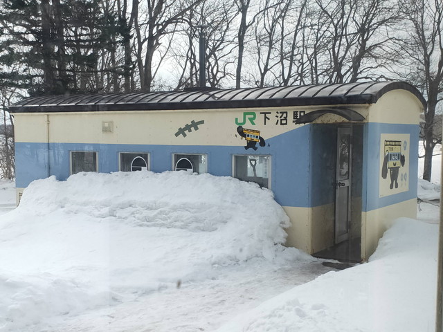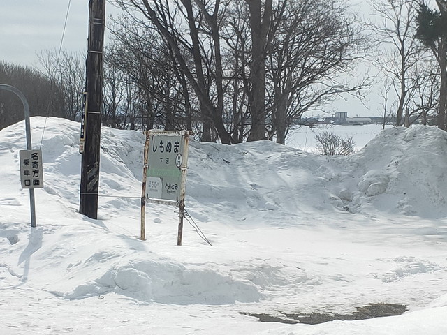 兜沼駅のところは駅舎のある側には集落があり、反対側には駅名の由来となった兜沼や公園が広がっています。ただこの時期は全面結氷しているので様子はほとんどわかりません。
