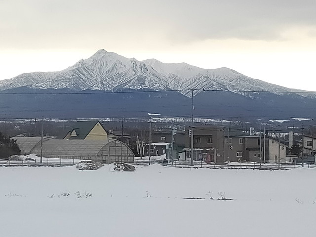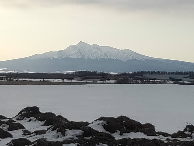 北浜から先は駅間が長くなるのでエンジンを目一杯ふかして走ります。車窓には斜里岳や遥か向こうには知床連峰が見えてきました。網走から40分ほどで知床斜里駅に到着し、流氷目当てか、ここからバスに乗り換えて知床方面に向かうと思われる方が下車していきます。
