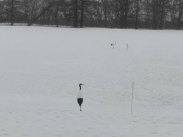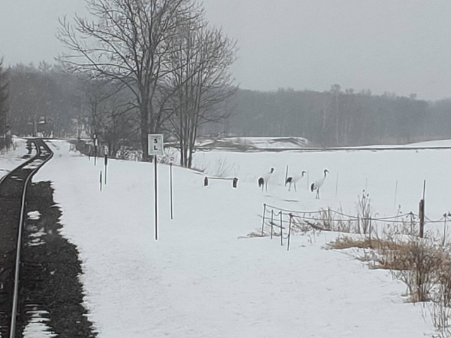 茅沼駅のすぐ横の私有地ではタンチョウがのんびりとしていたので写真におさめました。