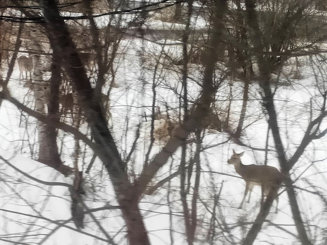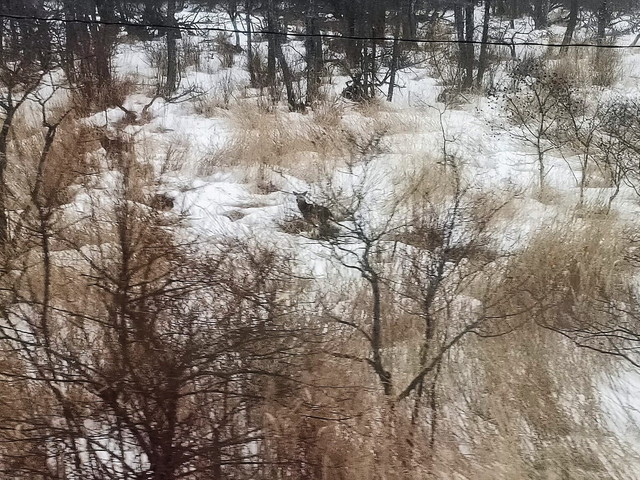 注意して眺めていると、時折鹿の群れがいるのが分かります。汽笛がせわしなく鳴る時はかなり近いところにいるので、 運が良ければ写真に収められます。