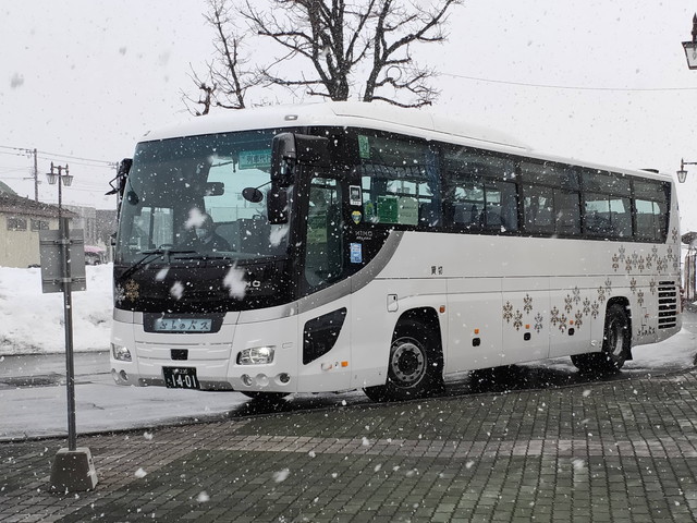 JR北海道のリムジンタイプのバスが来て数名の乗客を乗せて発車します。