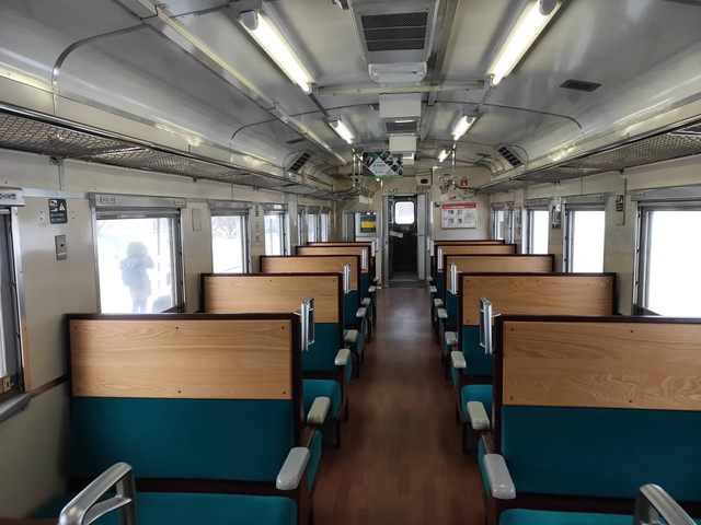 乗車する車両は、なぜか釧網本線の流氷物語号用の車両でした。ちょっとリニューアルされた車内でトクした感じです。