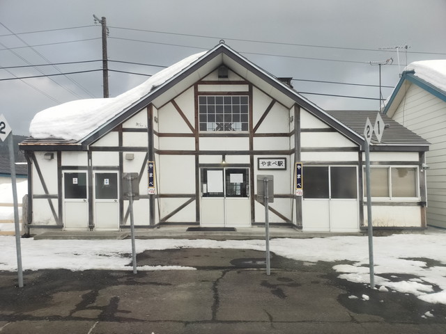 富良野線と分かれると長いトンネルで旧滝里駅のあったダムを避けるように直進して野花南駅に着きます。