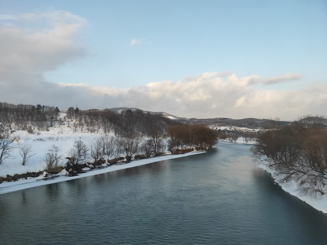 かなやま湖のほとりに建つ鉱業所のためにあるような東鹿越駅を出発し、かなやま湖を渡ると空知川に沿いながら進んでいきます。