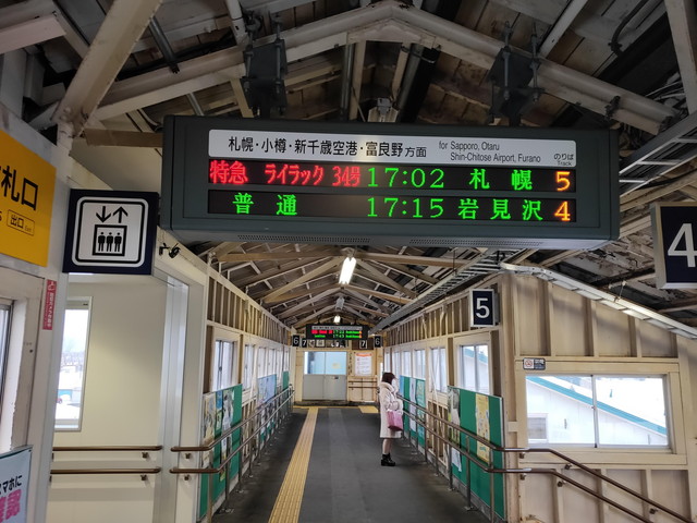 滝川からの接続は5分と非常に良いです。跨線橋を渡って函館本線のホームに降りるとほどなく旭川からの特急ライラック34号が到着します。