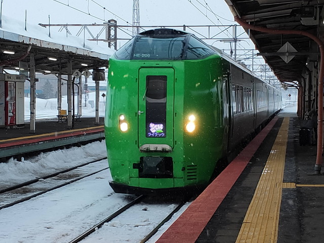 ライラック34号は緑色の車両の6両編成です。途中の停車駅はカムイ号と変わりませんが、車両の型式の違いによって6両のライラックと5両のカムイに分かれます。