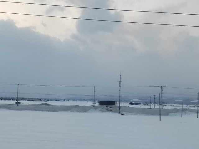 砂川、美唄、岩見沢と停車し、予想通り岩見沢でかなり席が埋まり、終点の札幌へと向かいます。札幌が近づくにつれ日も暮れてきて徐々に夜の雰囲気が迫ってきました。