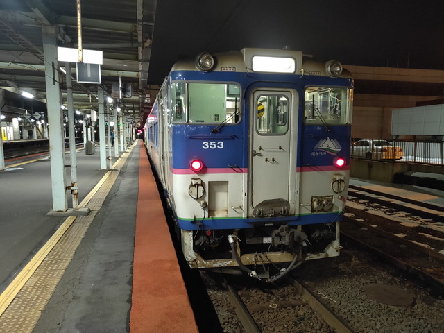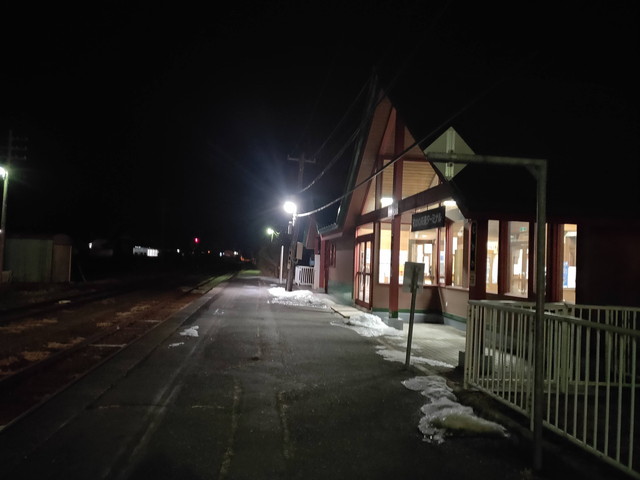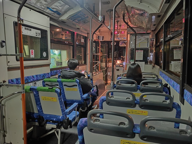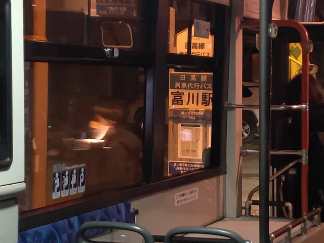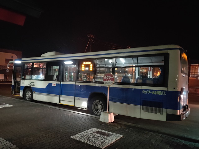 新冠でようやく1人乗車があってホッとしながら静内駅前に定刻通り21:35に到着しました。バスはそのまま車庫へと引き上げていったようです。