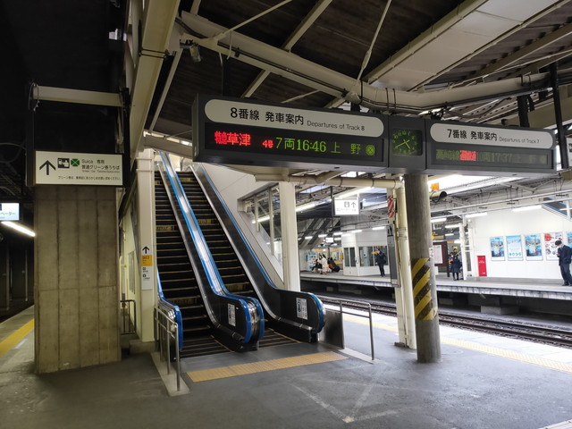 新幹線が16:30着で、草津号の発車が16:46、大宮到着が17:43なので、予定しているつばさ号が17:54発だから、まさに乗ってくれ!と言わんばかりの列車です。
