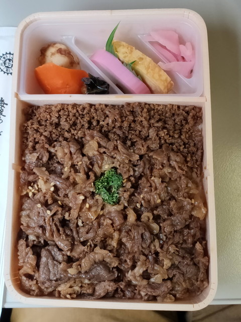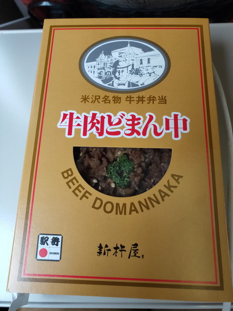 米沢駅で販売されている牛肉メインの駅弁を食べながら