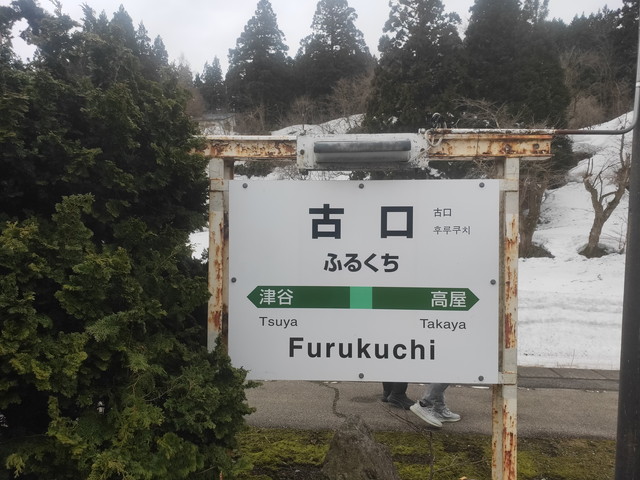 4つ目の古口駅で反対からの快速列車と行き違いを行うのですが、快速列車がなかなかやってこなくて、ホームで撮影をしようと待っていると、反対列車に乗ると思われる外国人から声をかけられて、列車がまだ来ないんだけどどっちの列車に乗ればいいのか?と聞かれたので、もうすぐ新庄行きが来るからそちらに乗って下さいと伝えたりしているうちに4分遅れで列車がやってきました。