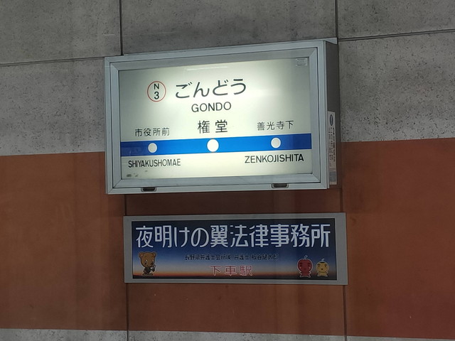 今回は、長野から善光寺下までを往復してみましたけど、途中には市役所、権堂と駅があり、どちらもちょっと薄暗い感じで、昔の東京の地下もこんな感じだったのかな?と思わせます。