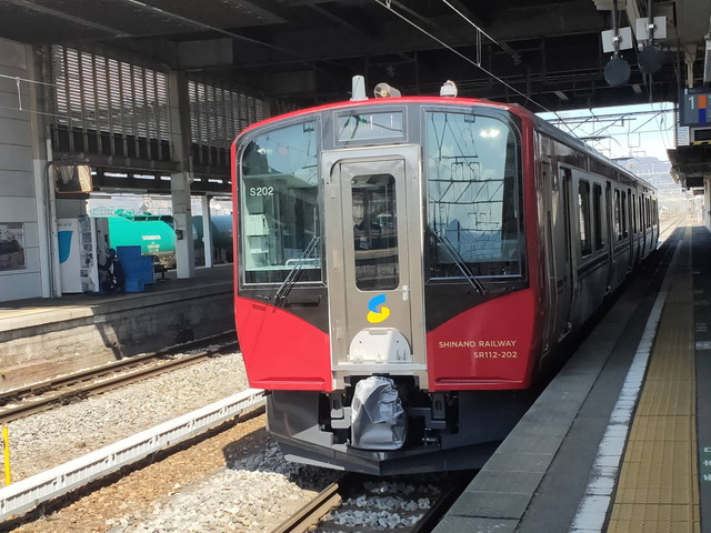 この5分後に発車するしなの鉄道の上田行きが止まっていますけど、どうやら狙っていた115系電車ではなく、 SR1型の普及タイプのようなので快速に乗車します。