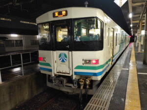 ただ快速列車自体は珍しいので、運転席横の所に立ちながら駅の通過シーンを眺めているとわずか10分で篠ノ井駅に到着します。