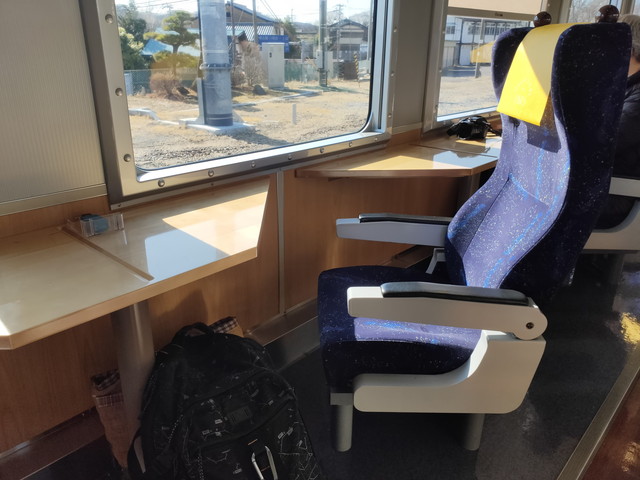 さて1人用座席を選んだのですが、今回については失敗でした。むしろ普通の2人掛け座席が並ぶ2号車のほうが良かったですね。