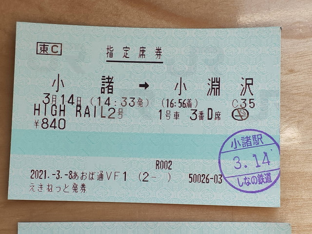 HIGHRAIL2号の座席指定券も確保出来た