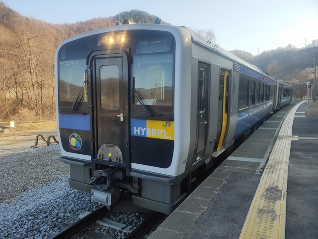 ディーゼルエンジンで発電してパワーのあるモーターを駆動させて日本で一番高いところにあるJR駅を通る路線を上り下りしていきます。