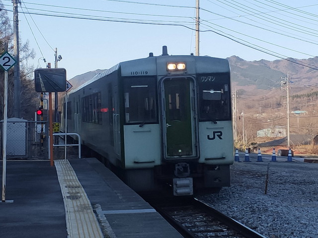 とはいってもHIGHRAIL号は野辺山で20分ほど停まったりするためで、停車駅の多い普通列車は結構時間を要します。こちらも乗車率はごくわずかで、中込や小海あたりまでにほとんど降りてしまったのでしょう。