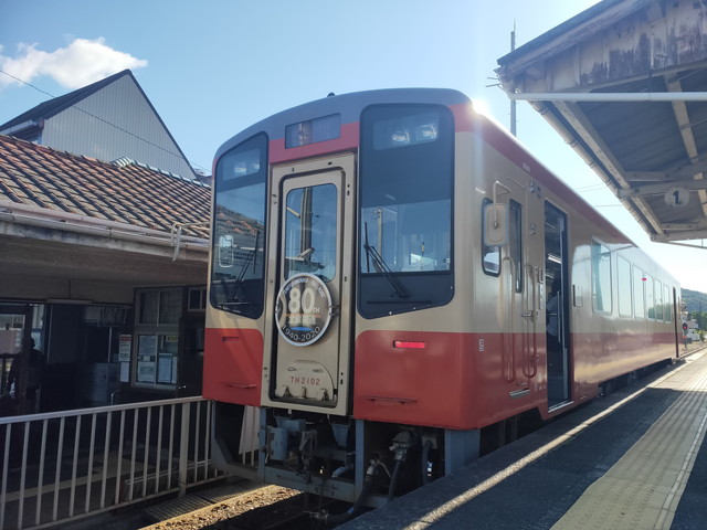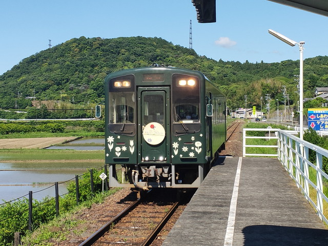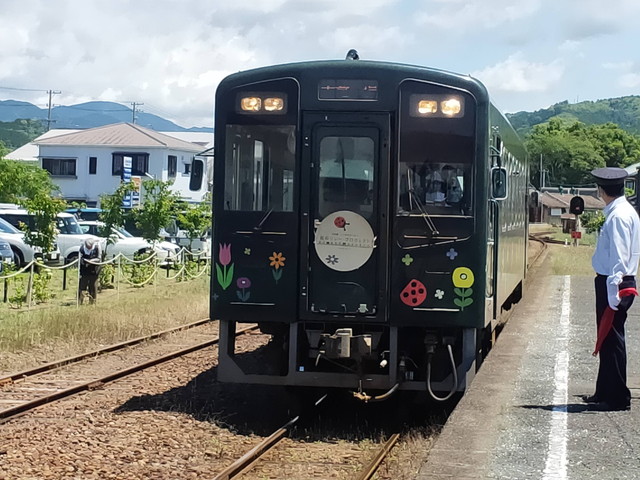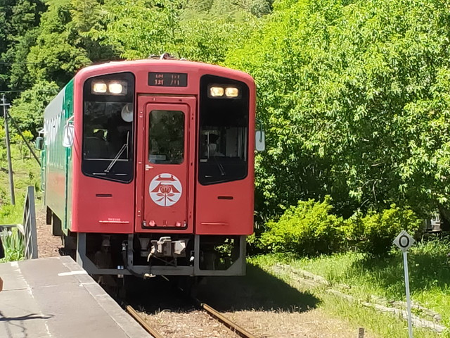 隣に座ったおばあさんと談笑。近くの一宮から野菜とかの買い出しに列車を使っているそうで、スーパーが地元に無いことを嘆いておられました。