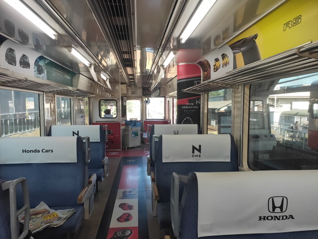 車内はホンダ車のCMで埋め尽くされています。
