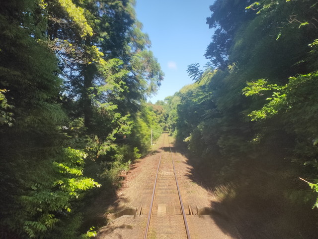 金指で12分停車したりとのんびりしながら、都田~宮口間の山越えに挑みます。途中フルーツパーク得駅を挟んでエンジンをふかし続けながら深緑の中を走ります。
