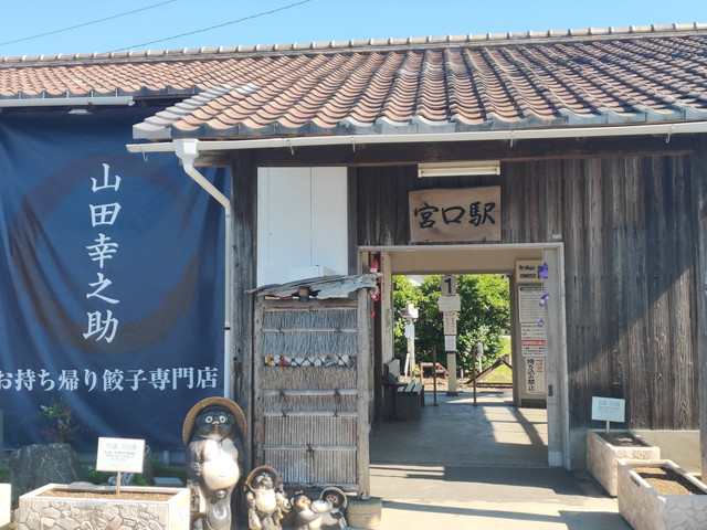 一枚目の宮口駅の写真は、駅舎を使って餃子の店舗”山田幸之助”が入っています。持ち帰り専門で別の日の夕方に立ち寄ったら買いに来る人が多く居ました。
