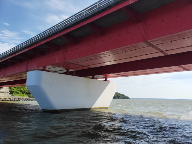 このルートは湖を渡る高速道路の橋の下をくぐるというもので、船の上から浜名湖サービスエリアや高速道路を走る車を眺めることができます。