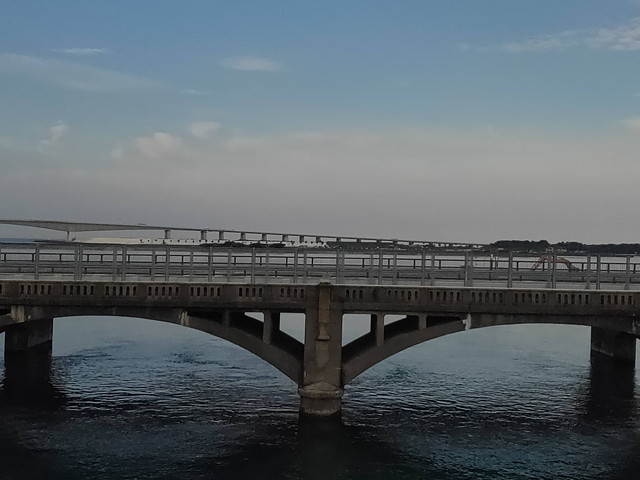 舞阪を出ると浜名湖を渡り、中の島にある弁天島駅を挟んで三つの鉄橋を渡って新居町駅に着くまでは湖の上を走っています。