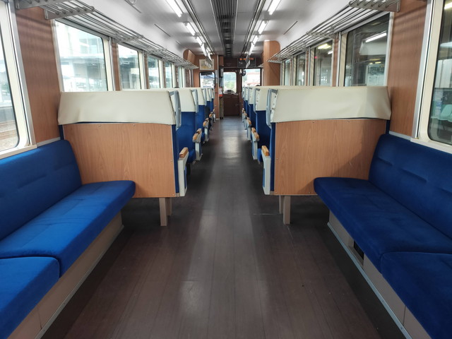 学校や工場が最寄りの駅からはこの時間でも乗車が多くありロングシートが埋まるくらいになります。