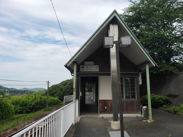 新所原から1時間近く走ってきて、宮口駅のひとつ手前にあるテーマパークフルーツパークへの最寄り駅であるフルーツパーク駅で下車します。下車したのは自分一人で乗車してきたのも数人でした。