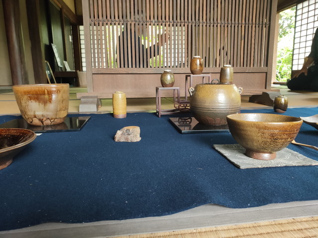 毎年花菖蒲の時期に合わせて近くの金谷が産地となる志戸呂焼の二人展が行われていますので、こちらも覗いてみます。