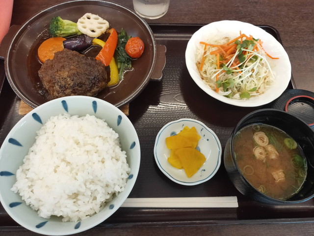 地産地消なメニューもあるので、三ヶ日牛のハンバーグ定食(990円)を食べました。