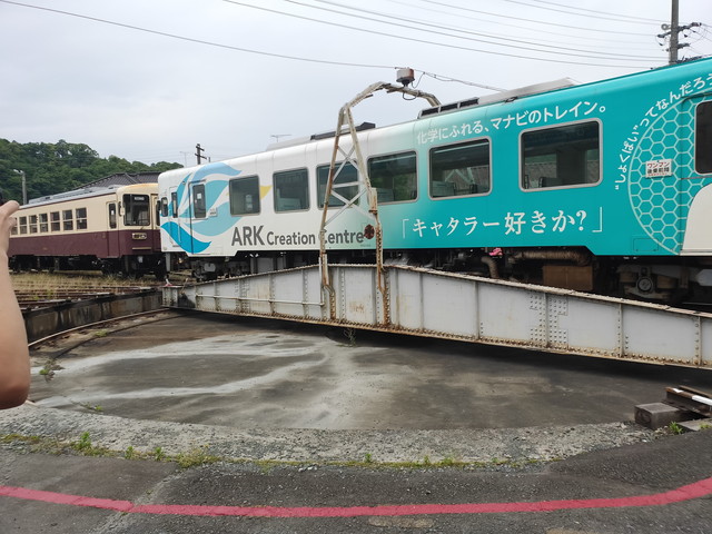 そのまま転車台に乗り、車内から転車台を1周します。ここからの眺めも相当レアだと思います。転車台から車庫に入り列車を下ります。