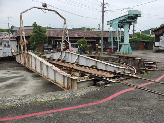 給水塔を見て、国の重要文化財にも指定されている事務室の脇を通り(帰りにも通るので行きは素通り)転車台の前にきます。