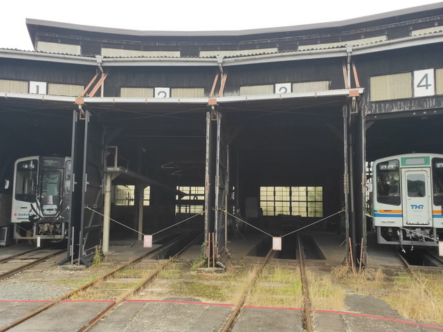 天竜二俣駅には国の重要文化財が駅本屋、ホームの上屋とプラットホーム(上り・下り各1)、転車台、扇形車庫など合計9つあります。