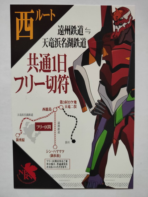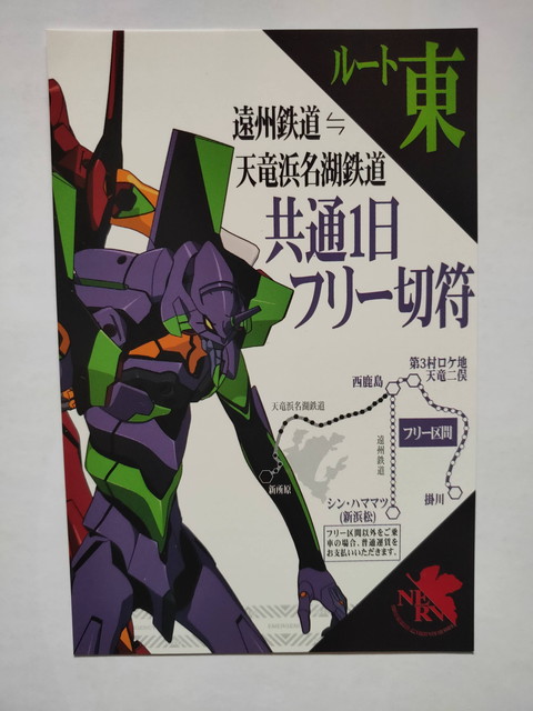 6月28日の天竜浜名湖鉄道の公式ページにて、上映中の『シン・エヴァンゲリオン劇場版』とコラボした特別デザインの一日乗車券を枚数限定で発売とアナウンスがありました。