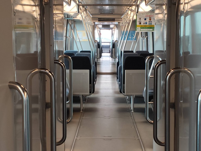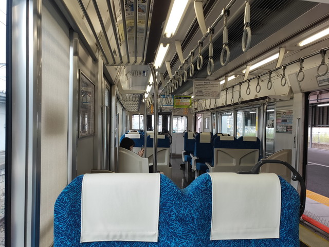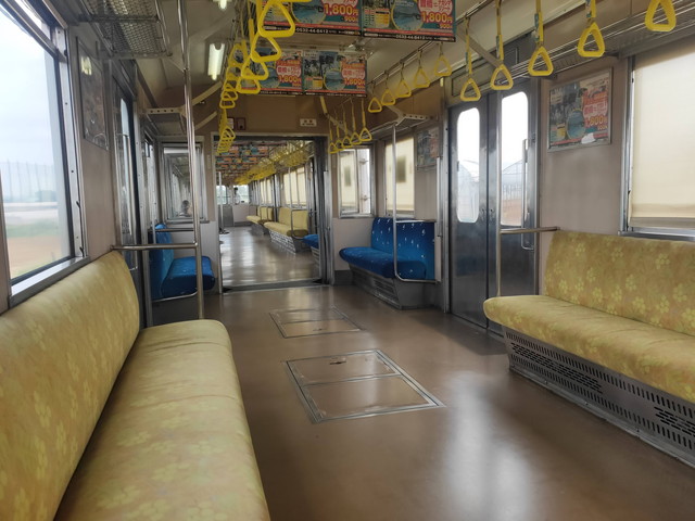 ロングシートの車両でいつも通りモーターの付いている車両を狙って座ります。