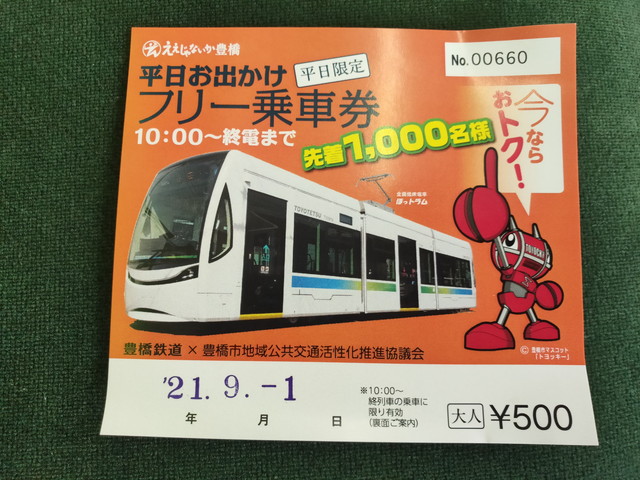 渥美線は1,100円、市内線は通常500円ですが、平日10時以後乗車ならば400円とのことでした。(但し販売枚数制限有)