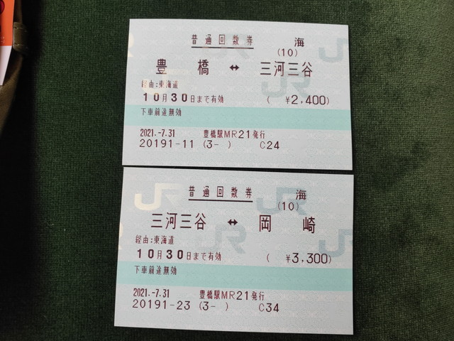 豊橋~岡崎の東海道本線も金券ショップで20円安く