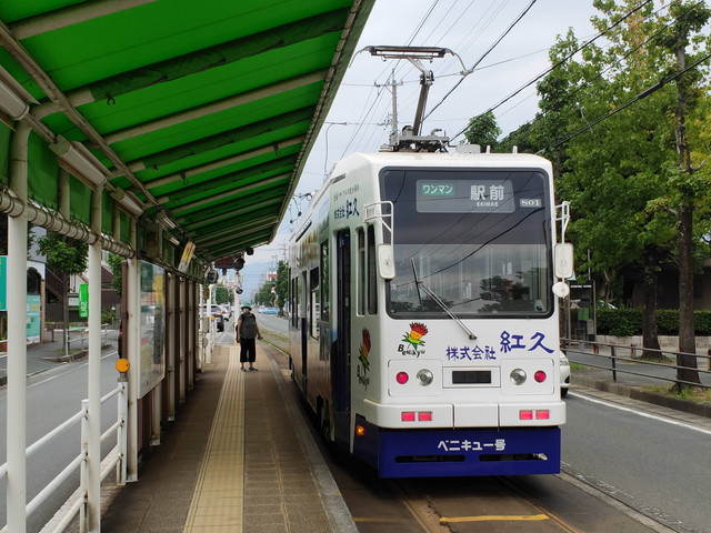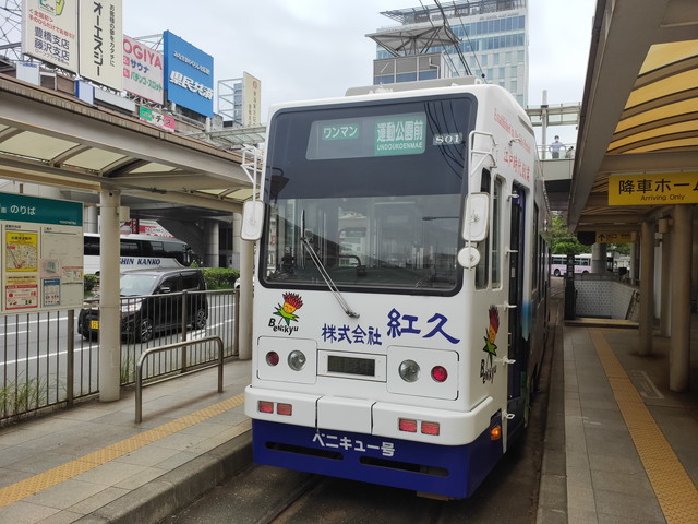 やってきたのは1時間に1本の割合で運転される超低床車でした。