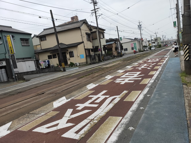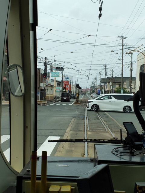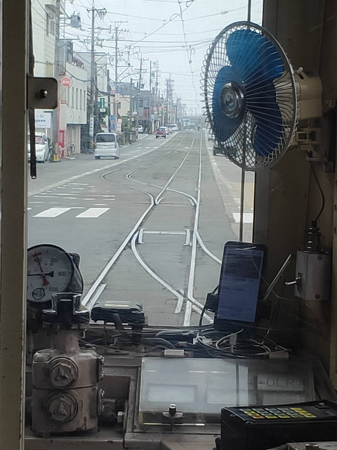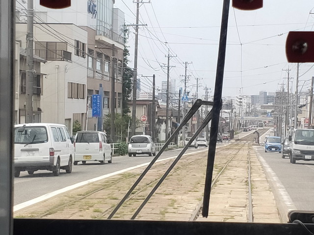 赤岩口に向かう列車とは東田電停あたりで行き違いしそうです。競輪場前からは単線になるので確実ですが1つ先の東田電停まで行ってみました。