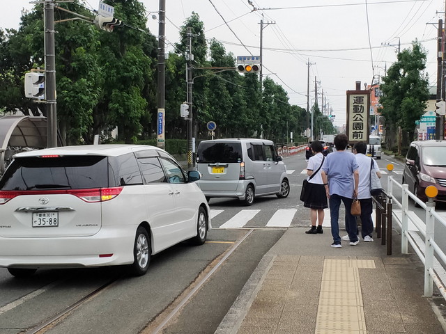 運動公園に行く列車は半径11メートルという日本で最も急なカーブを曲がるため、入れる車両に制限があります。名前の通りすぐ近くにある運動公園に向かう為のアクセスルートで道の真ん中で線路が行き止まりになります。