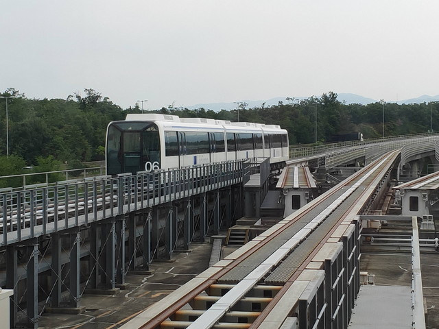 走行中はほんのわずか車体が浮いて走るのでカーブにも勾配にも強く、しかも速度が出せるので、似たような新交通システム(ゆりかもめ・ゆいレールなど)と違って最高時速100km/h運転をする区間もあります。