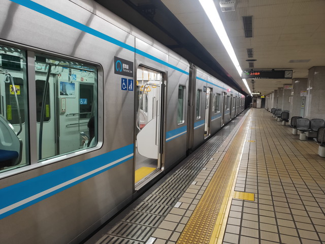5つ先の八事までには席がほぼ埋まり、名城線とクロスして立つ人も出てきました。