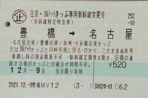 今回は+520円で豊橋→名古屋を新幹線自由席利用