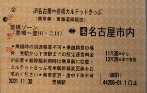 浜松→二川の回数券と名古屋豊橋カルテットきっぷの組み合わせ(金券ショップ)