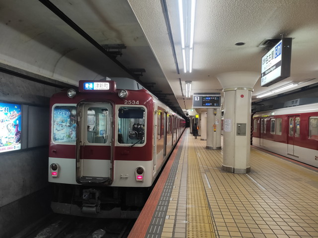 すぐに阪神線直通の神戸三宮行き8両がやってきて、地下に入り大阪上本町、日本橋と停車して13:44に大阪難波に到着します。近鉄名古屋から実に5時間39分の長旅でした。