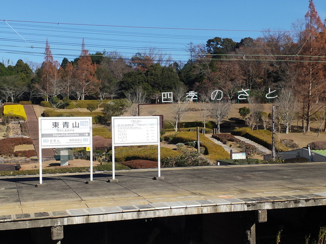 やたらと広い空間の広がる東青山に10:58に着き、11:07発の6両編成急行がほどなく入ってきて特急の通過待ちをします。